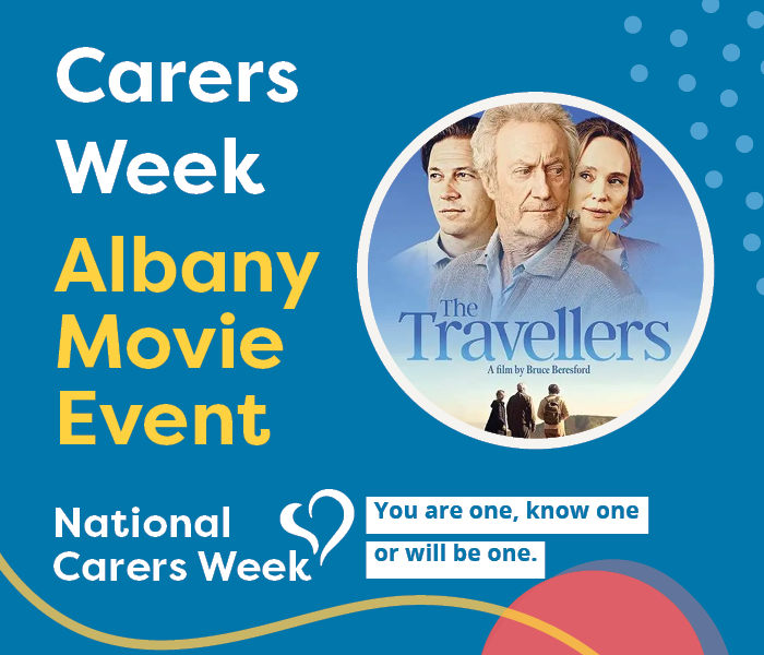 Carers in Albany and surrounding towns, join us in celebrating Carers Week with a special movie screening exclusively for carers and their guest. Enjoy the acclaimed Australian film The Travellers, starring Bryan Brown, in a relaxed and welcoming setting.